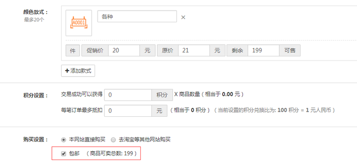 商品模块增加免邮功能,可对单独某件商品设置免邮,结算时就可不加上运费