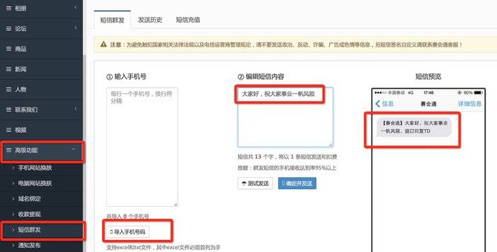 1.系统后台新增短信群发功能,亲们可以随时将消息通知到每一位会员手中喽。(付费版用户可联系客服人员更改短信的首部网站名称,如:【小北户外】XXX内容):