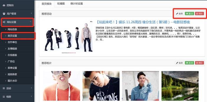 2.系统后台首页模块设置全面升级,实现了实时同步。