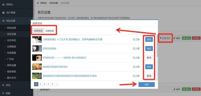设置首页推荐的活动和商品支持支持手动选择,方便用户推荐最心仪的活动和商品。