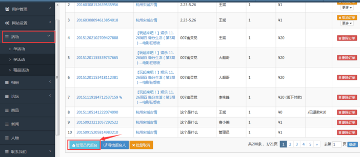 1.系统后台活动订单管理中新增管理员代报名功能。具体请参考教程:http://www.saihuitong.com/bbs/topic?id=8539