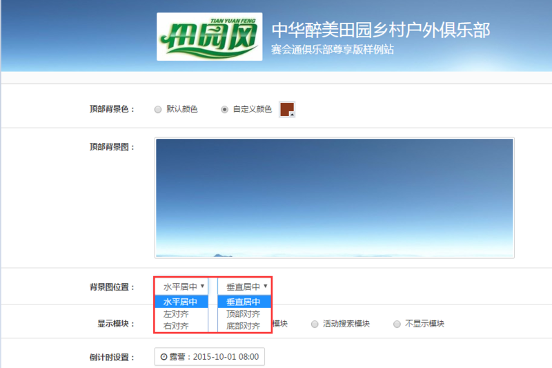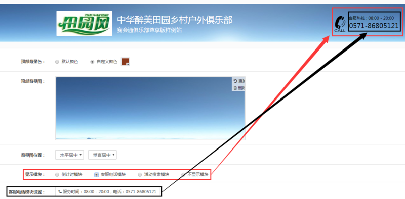 网站最新上线“网页顶部设置"功能。尊享版及以上版本可对网站顶部进行背景色,背景图,倒计时/客服电话模块的设置
