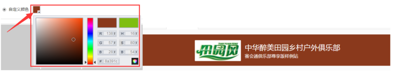 1.点击默认颜色,或者自定义颜色,可以设置网站顶部的颜色。