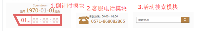 下图是3个模块的部分样式。(可点击倒计时样式/客服电话模块样式挑选自己需要的样式)