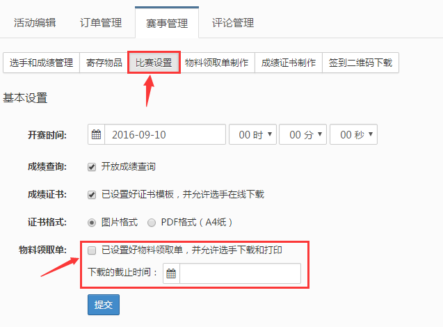 】,设置好物料领取单下载功能,并设置好下载截止时间。