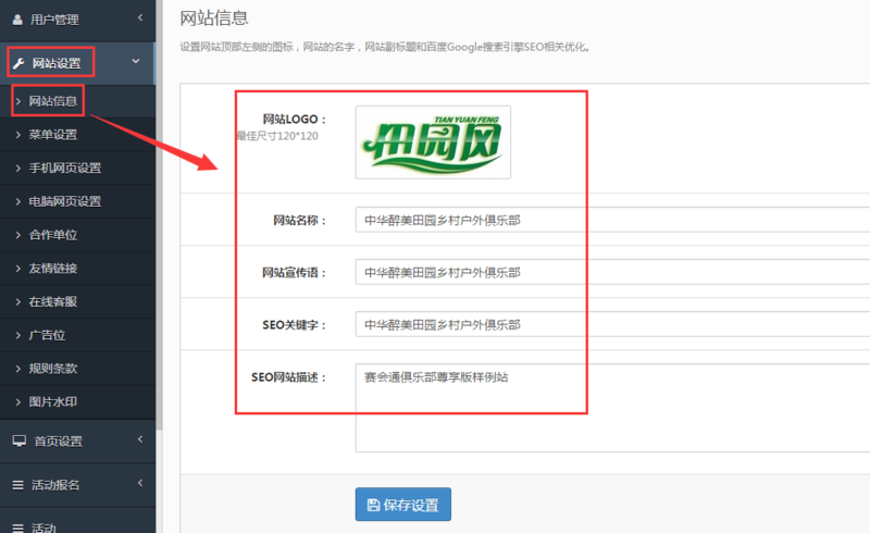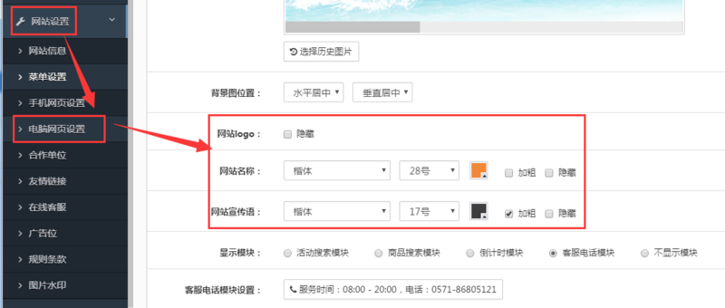 网站名称、网站宣传语是网站显示的重要部分。需要修改相关信息,可在网站后台的
