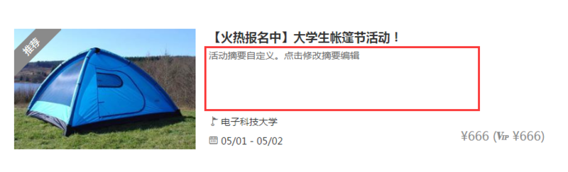 目前网站的文章板块以及活动版块支持修改摘要内容啦,大家可以在点击活动/文章板块的