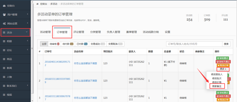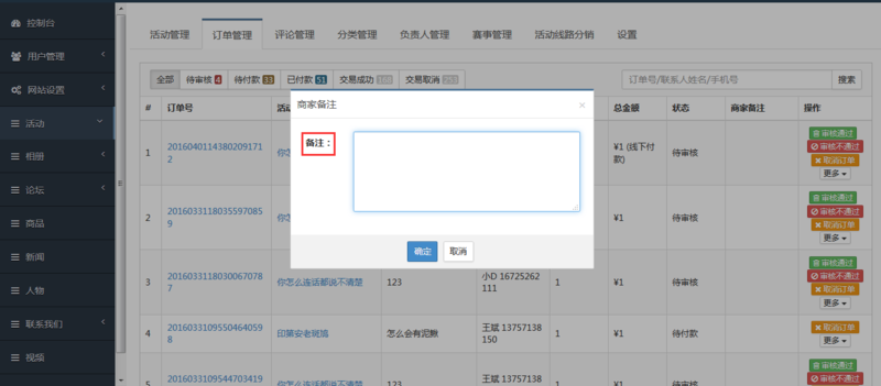 【活动订单设置商家备注】关于如何为活动订单设置商家备注