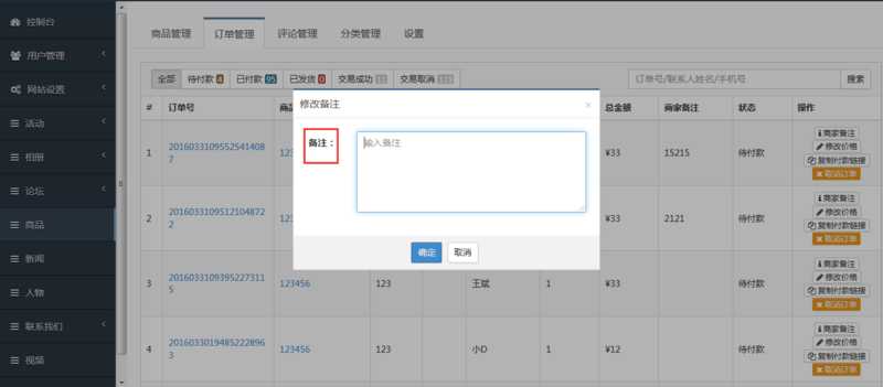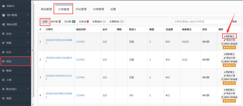 【商品订单设置商家备注】关于如何为商品订单设置商家备注