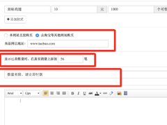1.在购买设置时,可以设置至其他网站购买,这样就可以和亲的淘宝店,京东店等相互联系起来哦2.使用虚假交易量,在商品添加或编辑时使用虚假交易量,使亲的商品营造出一种供不应求的感觉,采取此方法之后,亲的商品必定卖的红红火火哈3.在商家提醒出,可给出“库存有限,抓紧付款”等提示语促进买家下单哦
